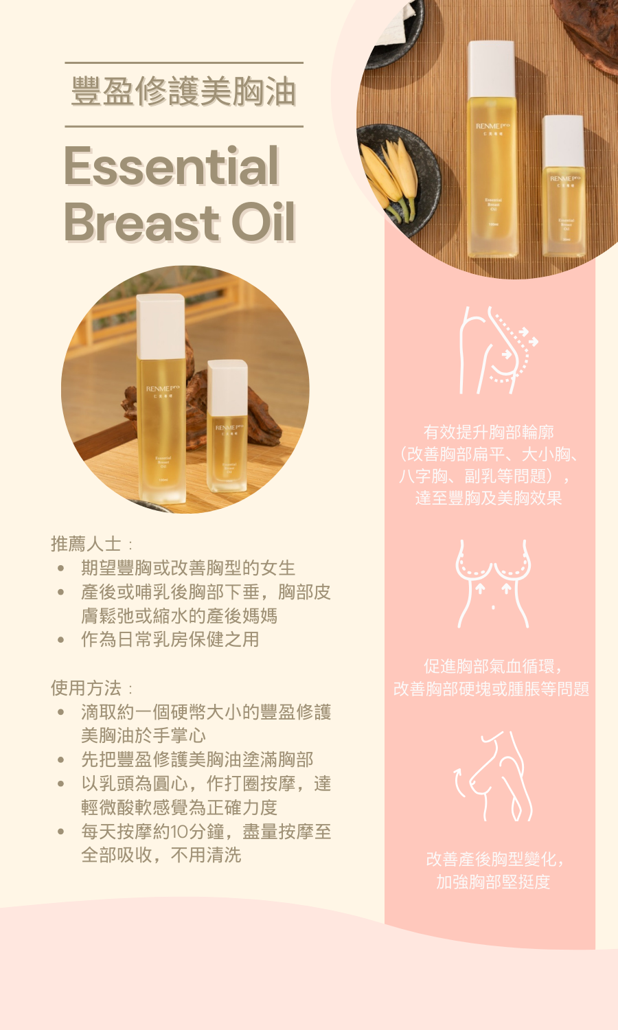 1. 有效提升胸部輪廓(改善胸部扁平、大小胸、八字胸、副乳等問題),達至豐胸及美胸效果